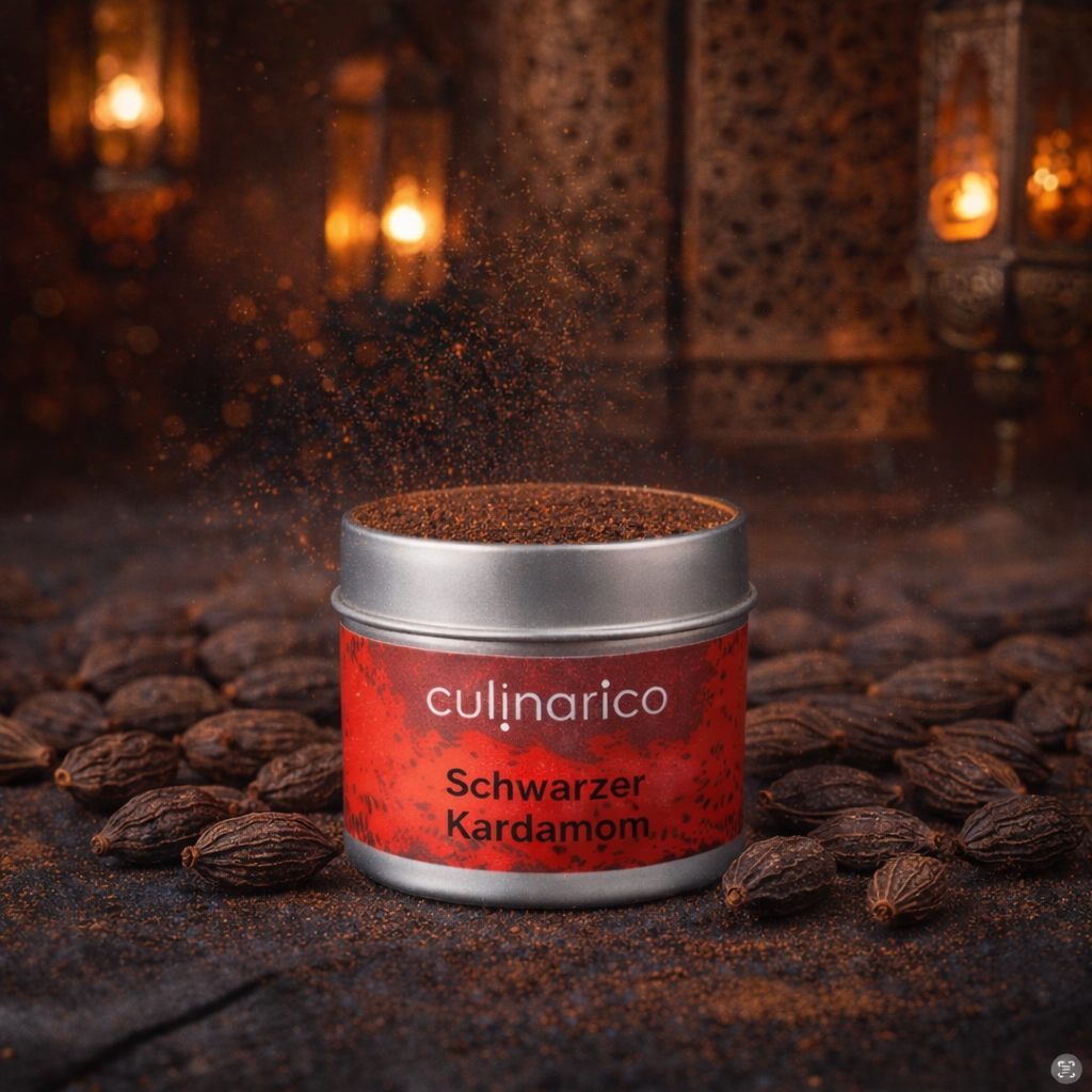 Kardamom ist das bekannteste und beliebteste Gewürz der orientalischen und indischen Küche. Es gibt grünen Kardamom und schwarzen Kardamom. Der schwarze Kardamom wird viel später gepflückt als die grünen Kapseln. Danach werden die schwarzen Kapseln in der Sonne getrocknet und vermahlen.